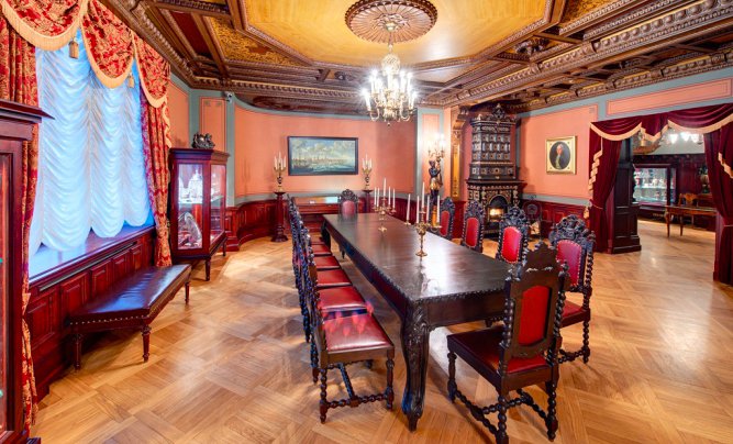 Qui troverai la più grande collezione privata di argenteria del Baltico, lampadari di cristallo, dipinti sul soffitto nella sala delle celebrazioni, armi, armature e molto altro.