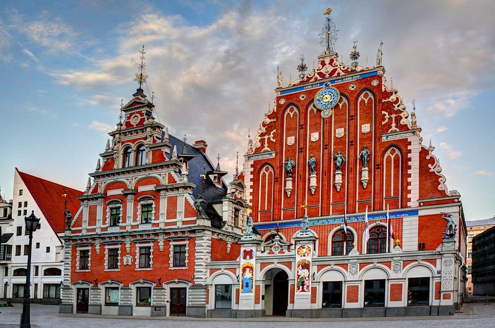 - Ammira l’opulenta facciata della Casa delle Teste Nere con vari stili architettonici e tendenze artistiche di vari periodi;