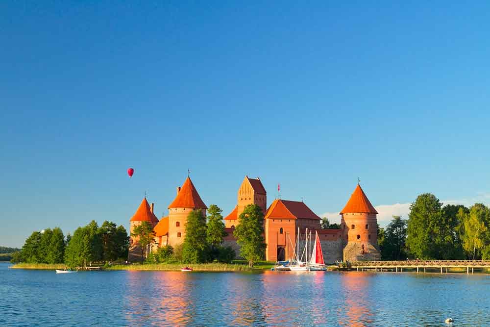 Arroccato su una piccolissima isola sul Lago Galvė, il castello di Trakai con la sua costruzione in mattoni rossi offre lo sfondo ideale per una stimolante escursione o per una giornata di relax, storia e cultura. Il castello fu costruito nel XIV secolo dal Granduca di Lituania, Kęstutis, e completato nel 1409 dal suo successore, Vitoldo. Durante la guerra tra la Lituania e il Graducato di Mosca, nel XVII secolo, il castello fu gravemente danneggiato.